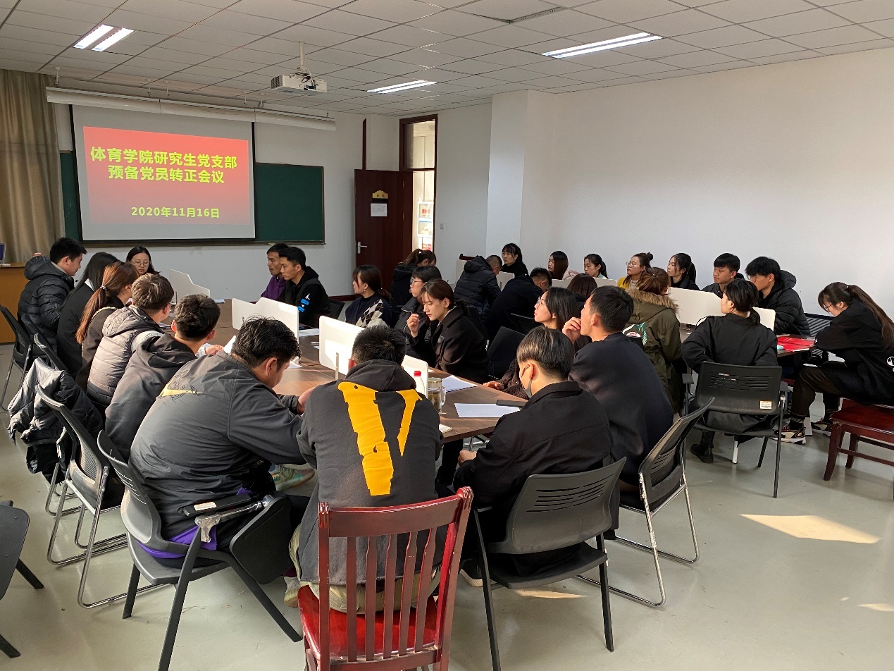 2020年11月16日下午2点,william威廉英国官网研究生党支部预备党员转正大会在william威廉英国官网503研究生教室召开。本次会议共有32名党员参加会议,其中有21名正式党员,11名预备党员。会议由支部书记何晓雁主持。