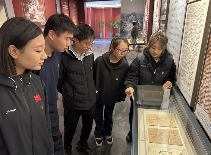 在中共太原支部旧址,运动训练专业李雨曦同学说:“站在这片点燃山西革命火种的土地上,看着彭真同志参与创建支部、领导斗争的史料,我内心特别震撼。这里的每一件文物都在诉说先辈们以青春赴使命的故事,让我真切懂得中共太原支部作为‘革命灯塔’的重量。特别是在支部旧址重温入党誓词,仿佛与当年的革命青年进行了一场跨越时空的对话,更加坚定了我的理想信念。 作为运动训练专业的员工,今后我会把先辈们不怕吃苦、勇担使命的精神融入训练,在赛场和人生路上都传承好这份红色担当。”