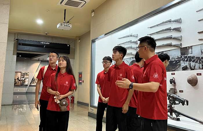一个个历经沧桑巨变而沉积下来的时代坐标,一件件铭记着丰功伟绩的珍贵文物,一座座象征英明战略决策和高超指挥艺术的历史丰碑,这种视死如归、前赴后继的革命英雄主义精神深深地感染着在场的每一个人,实践队队员再一次地感受到了那些为了民族独立、人们解放的先烈们在枪林弹雨中奋不顾身冲向敌人的决心和信念。参观结束后,实践队全体成员在将帅广场前集结,高举右拳,面向党旗,庄严宣誓。那铮铮誓言,更加激励青年师生们要常怀感恩之心,坚守中华民族的民族心和民族魂。