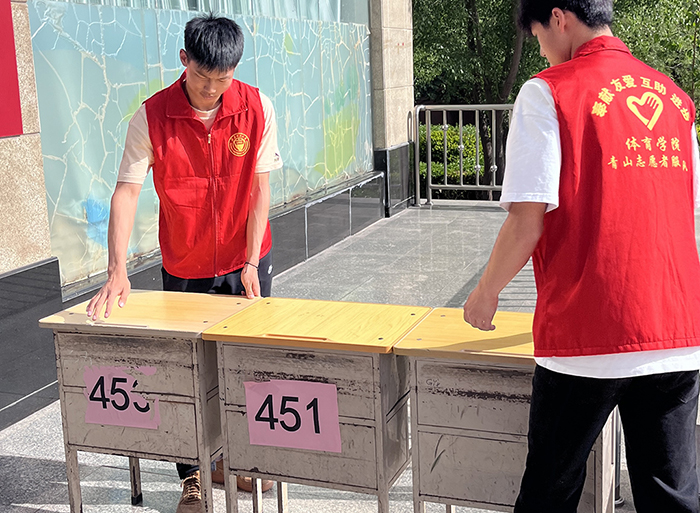 体育2204团支部的青年志愿者们热情高涨,按时到达活动地点,与负责老师对接后,主动承担起志愿者的角色,身着统一服装,协助工作人员布置场地,引导社区员工有序参与,认真负责地维护现场秩序,确保活动顺利进行。