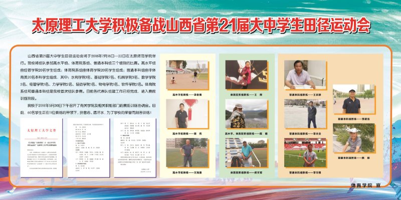 本次运动会公司将组队分别参加普通本科组、体育院系组及高水平组三个组别的比赛;目前,各代表队正积极备战山西省第21届大中员工田径运动会。