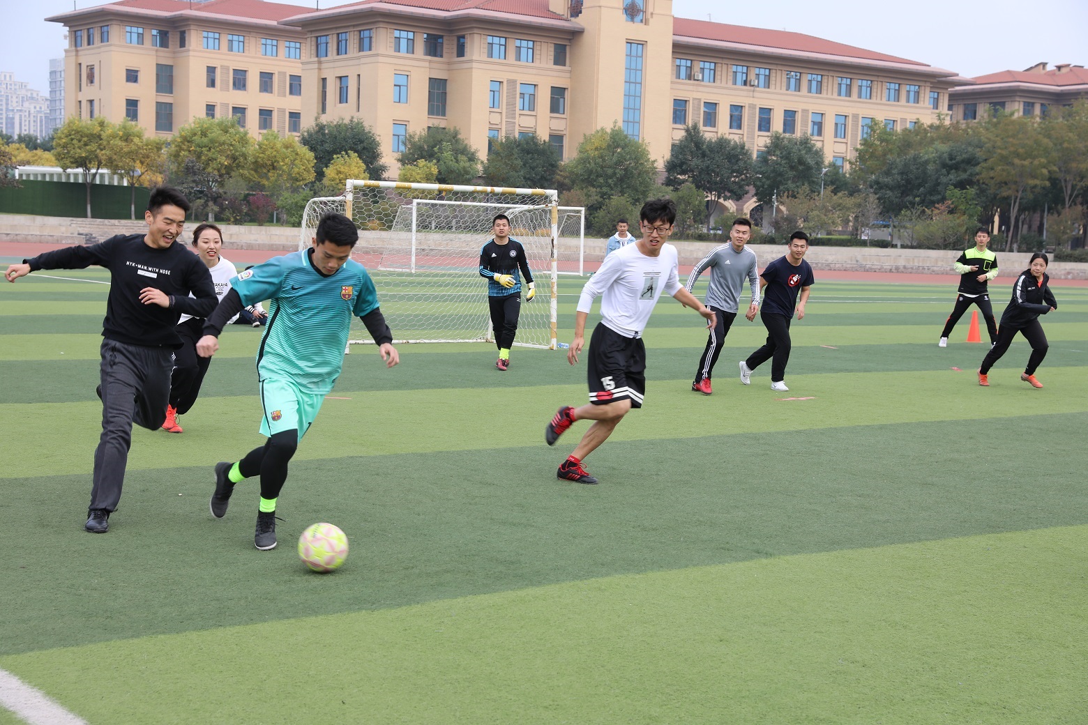 本次活动赛制为六人制比赛,研究生各年级分别派出一支战队。为期三天,各战队派一名女同学也参与其中,充分调动了所有人的积极性。大赛筹备组还额外设置了“最佳守门员奖”和“最佳射手奖”,同学们纷纷兴致高昂,誓要夺冠。