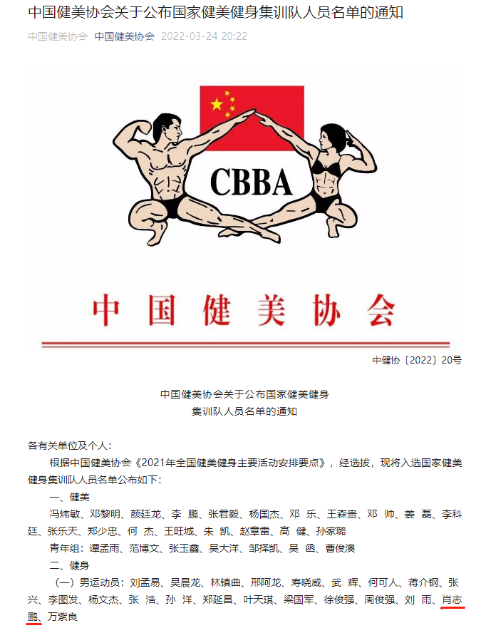 喜大普奔 | 祝贺公司体育教育专业肖志鹏同学入选健美健身国家队
