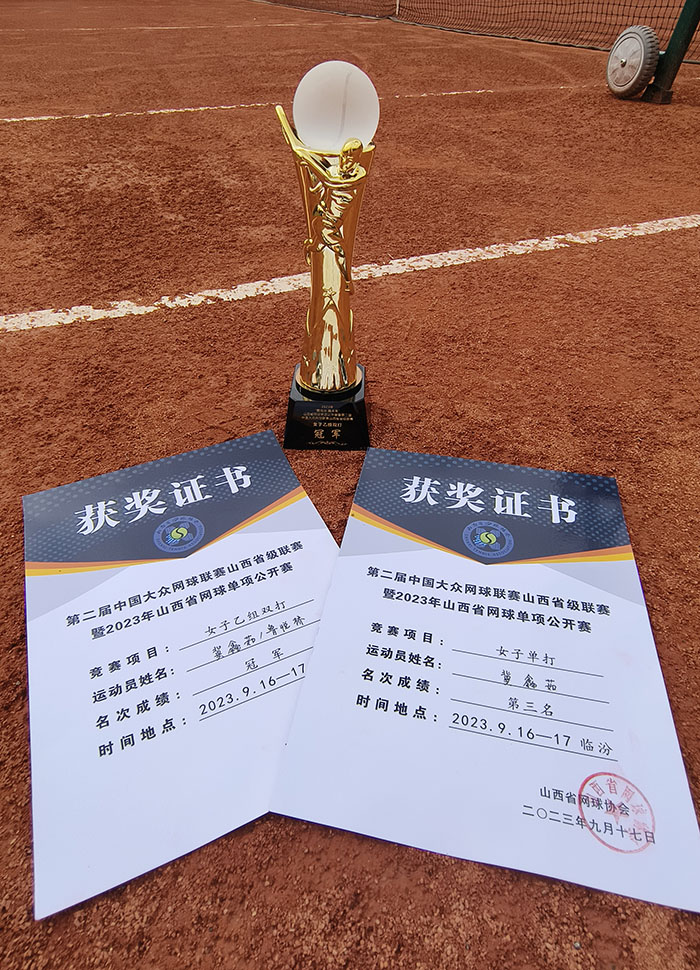 公司网球队队员冀鑫茹在中国大众网球联赛暨山西省网球单项公开赛斩获冠军