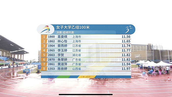 高水平运动队2020级本科生陈依婷获得女子乙组200米银牌和女子乙组100米决赛第八名,2020级本科生彭缘获得女子甲组3000米障碍跑铜牌以及女子甲组1500米第六名,2020级本科生刘薇依获得女子甲组1500米第八名。