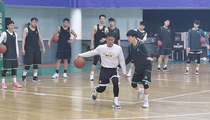 前国家男篮球员吕晓明应邀对公司男篮进行特训