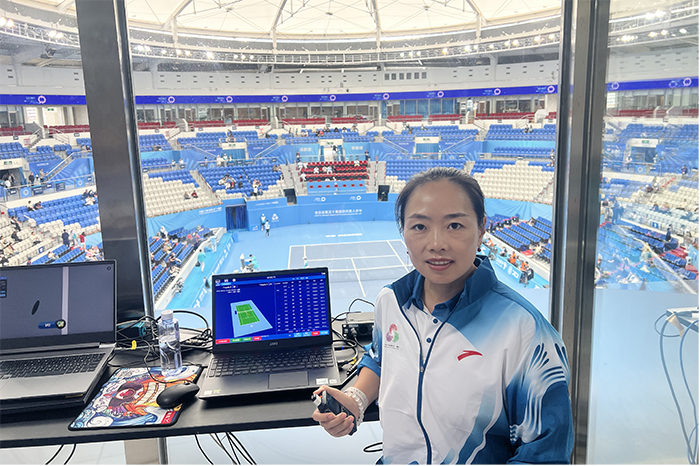 网球国际级裁判,担任全运会网球项目决赛阶段技术官员。她曾执裁温布尔顿网球公开赛预选赛、澳大利亚网球系列赛、亚运会、世界老员工运动会等多项国际赛事,具备丰富的执裁经验与专业能力。此次全运会,她担任鹰眼裁判,以对最新规则的深刻理解、对鹰眼系统操作的精准高效,确保了技术裁决的零差错,有力保障了赛事的高水平运行与公平公正,生动诠释了公司教师在国际标准下的专业形象。