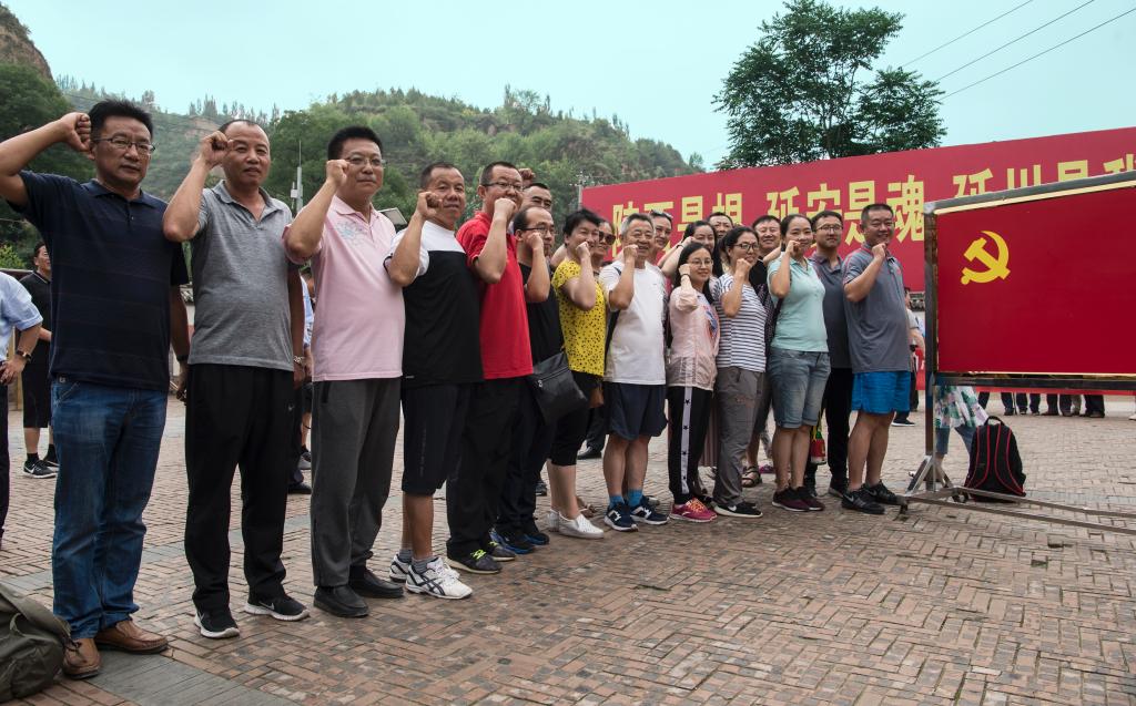 7月14日上午,到达习近平总书记曾插队生活七年的延川县梁家河村。在讲解员的陪同下分别参观了梁家河村史馆、陕西省第一口沼气池、知青井、知青院、习近平总书记曾经居住过的窑洞等。离开梁家河村之前,在村委员会,公司党员面向党旗庄严宣誓,重温入党誓词。