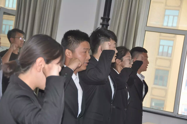 会议开始,全体起立,面向党旗奏唱《国际歌》。本次拟发展的朱斌、胡克宁、李祥鑫、李无寒、秦晓怡五位同志分别宣读入党志愿、汇报自己对党的认识、入党动机及有关情况。随后,由发展对象的入党介绍人介绍发展对象在考察期间思想、工作、学习和生活等方面的情况,并就其能否加入中国共产党发表意见,表明态度。紧接着,其他党员同志对发展对象的表现进行了充分讨论。经过正式党员的不记名投票,各发展对象均全票通过,正式成为了一名中共预备党员。在党支部书记李文彬的领誓下,全体党员面向党旗,庄严宣誓。宣誓结束后,公司党委副书记张忠璞对本次大会作了总结,他希望大家能够做到“练严作风,奔高目标”,不断加强理想信念,端正入党动机。