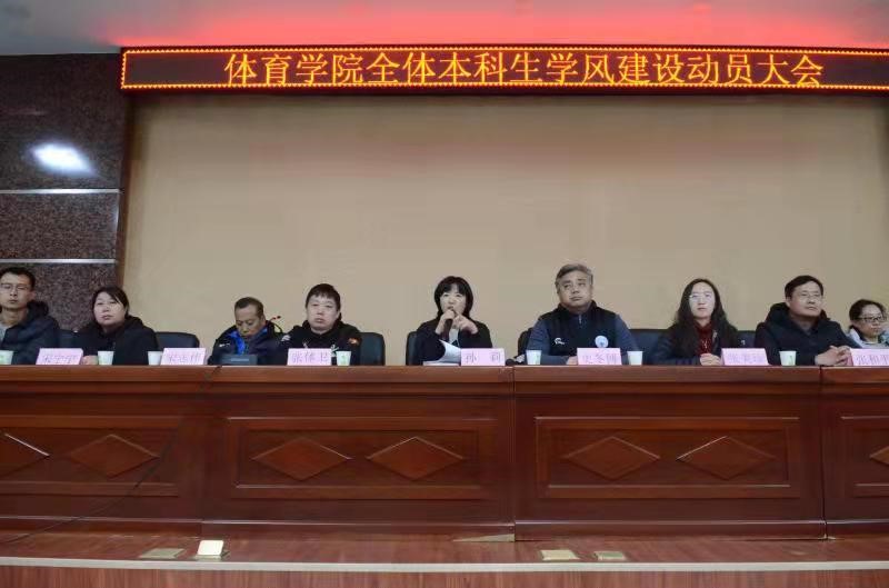 为了强化员工们的行为规范,营造优良的学风氛围,树立员工热爱学习、认真学习的新风尚,贯彻“立德树人”的根本任务,落实好“五育并举”的培养理念。体育院于11月22日晚上18:00在外国语公司一层报告厅举行了william威廉英国官网全院本科生学风建设动员大会,公司党政领导、中层干部、部分教师代表出席,党委副书记张体卫主持,william威廉英国官网全体本科生参加。