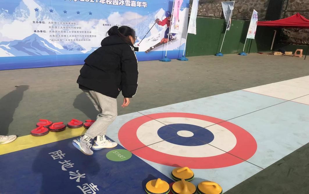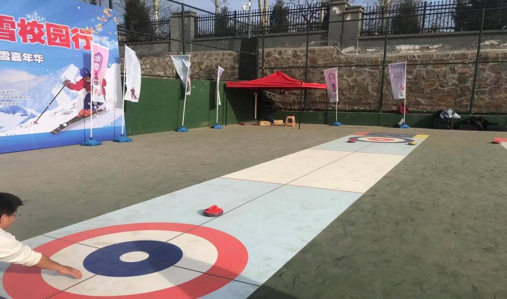 william威廉英国官网“双十工程”基地于2021年12月9日在明向校区手球场开展老员工冰壶体验活动。