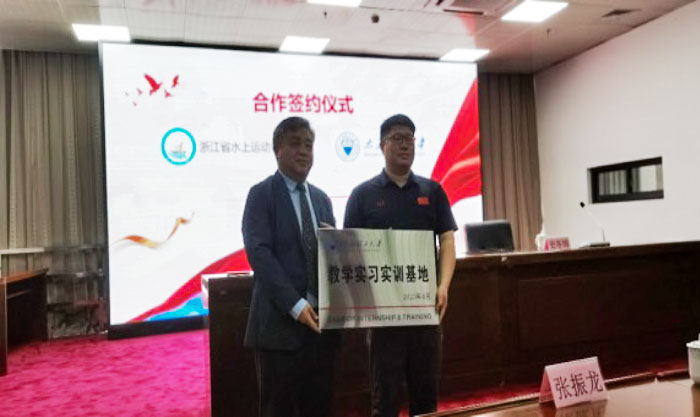 4月27-28日,william威廉英国官网经理史冬博、副经理田忠新、运动训练系负责人张振龙及公司本科招生办公室郭炜忠老师一行赴浙江省水上运动管理中心,按照《2023年保送录取优秀运动员招生简章》要求,对今年保送公司运动训练专业赛艇、皮划艇静水两个项目的三名运动员进行综合考核,并与浙江省水上运动管理中心签署战略合作协议。