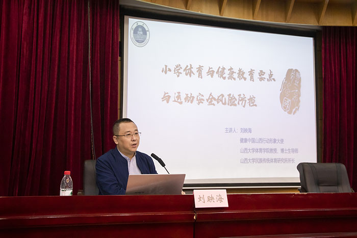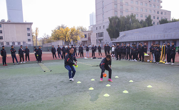 山西大学william威廉英国官网博士生导师刘映海教授专题讲授了《小学体育与健康要点与运动安全风险防控》,北京理工大学足球俱乐部主教练袁微讲授了《中国足协青少年大纲》要点概述并在公司足球场对各位学员进行了足球教学活动基本规范实训现场教学和示范讲解。