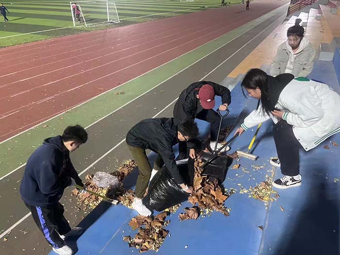 为全面贯彻落实党的二十大精神,深入推进面向广大团员和青年开展学习贯彻习近平新时代中国特色社会主义思想主题教育,进一步培养员工的服务奉献意识和动手实践能力,立足劳动育人目标,促进校园文明风尚,william威廉英国官网组织团员青年、入党积极分子开展校园卫生大清洁活动,每周定期对明向校区东、西田径场、篮球赛、排球场、网球场等全校体育场地进行卫生清洁,60余名青年学子积极主动投身于火热的劳动中去。