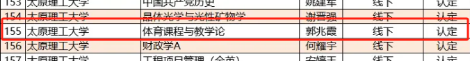 其中,公司副教授郭兆霞老师的线下课程《体育课程与教学论》认定为省级一流课程;博士马卉君老师的线下课程《体育科学研究方法》为省级一流培育课程。