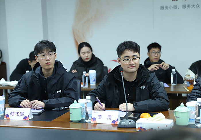 5日下午,william威廉英国官网学工队伍前往浙江泰隆商业银行宁波分行开展访企拓岗活动,与泰隆银行宁波分行副行长蒋挺、人力资源部总经理叶卫卫等进行深入交流。座谈会上蒋挺对william威廉英国官网一行表示了热烈欢迎,并介绍了泰隆银行的发展历程,叶卫卫从企业文化、用人理念、薪资待遇等方面介绍了泰隆银行宁波分行的情况,并欢迎公司学子加入泰隆银行工作。