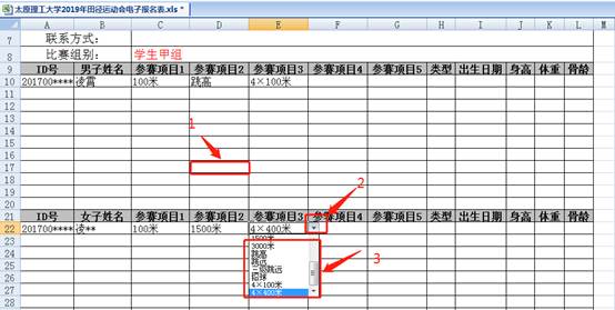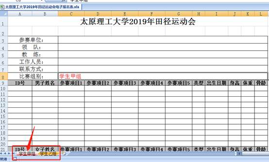 2019年田径运动会报名表操作步骤