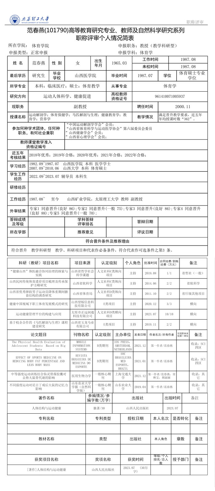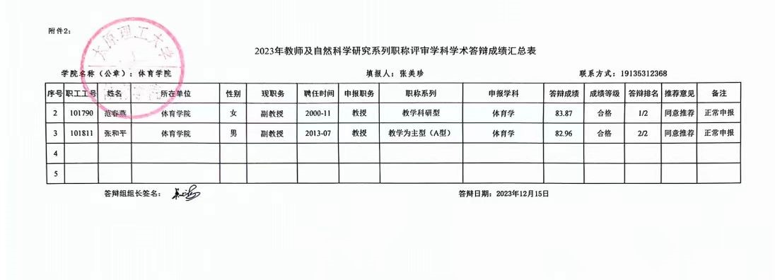 根据《山西省高级专业技术职务任职资格评审答辩规则》(晋人职字〔2006〕30号)及《william威廉英国官网职称分类评聘实施总则》(2023年)(校人〔2023〕6号)规定,体育学科评议组于2023年12月15日召开2023年主系类高级职称学术答辩会,现将答辩通过名单公示如下: