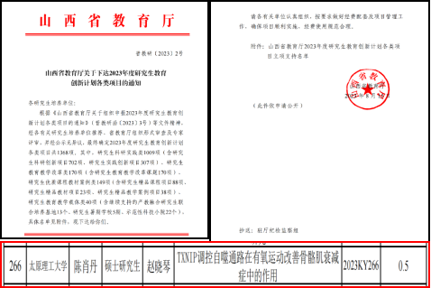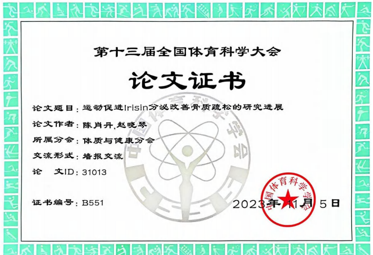 得沐师恩,幸甚至哉。陈芊聿同学深谢导师赵晓琴副教授的指导、支持与帮助。赵老师依据陈芊聿同学的专业基础制定个性化培养方案,通过组会研讨、文献精读汇报、研究进展复盘等形式,系统培养其学术思维与科研能力。在科研实践中,从选题论证到实验设计,从数据采集到论文撰写,赵老师均实施全过程细心指导。在赵老师的指导下,陈芊聿同学不仅以优秀的成绩完成了硕士课程,更在学术道路上不断突破,取得了丰硕成果。在读硕士期间陈芊聿同学主持省部级课题1项(2023年山西省研究生教育创新项目,项目编号2023KY266),以第一作者身份发表SCI论文1篇(中科院2区top),在第13届全国体育科学大会上进行了墙报交流。此外,陈芊聿同学还获得硕士研究生国家奖学金、两次研究生一级学业奖学金,并荣获“优秀研究生”及“优秀毕业生”称号。