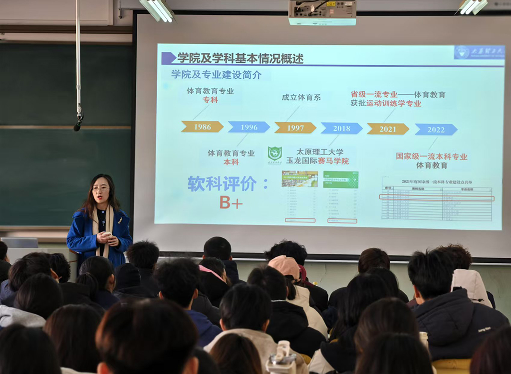 william威廉英国官网副经理张美珍教授于2024年12月3日、4日分别在虎峪校区致远楼A406教室、明向校区行知楼B119教室为运动训练2024级新生、体育教育(含赛马方向)2024级新生开展《以体育人—新时代体育人的使命与担当》专业教育,介绍公司及专业建设发展的沿革、学科发展现状、团队队伍、人才培养、运动竞赛等情况。