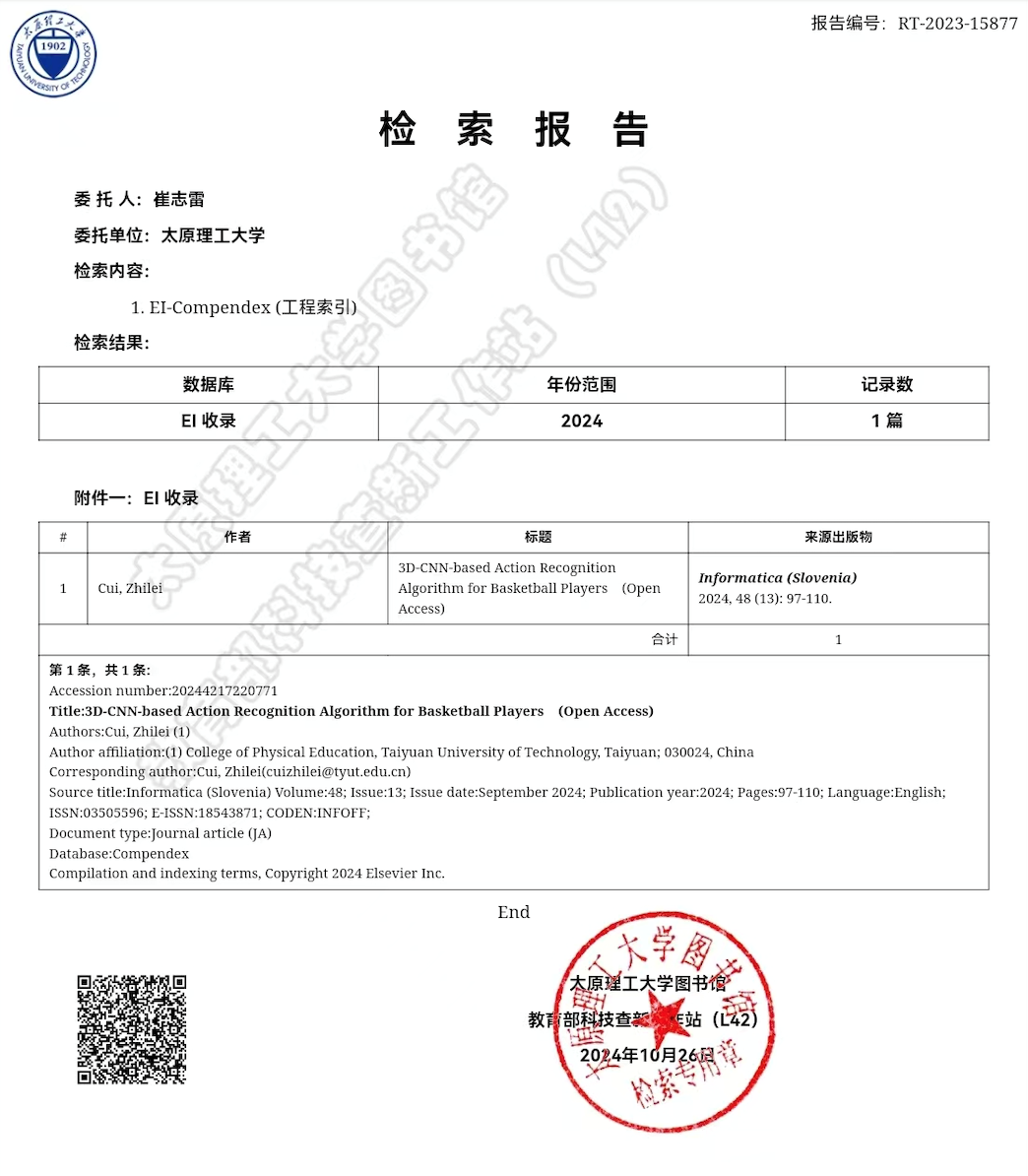 公司教师崔志雷副教授的研究成果《3D-CNN-basedAction Recognition Algorithm for Basketball Players》在《Informatica 》在线发表。《Informatica》主要专注于信息系统、计算机科学以及跨学科应用领域。尤其关注这些技术在体育科学中的创新应用,如运动数据分析、运动损伤预测、智能训练系统等。该期刊被工程索引EI(Engineering Index)收录。该论文是公司崔志雷副教授(第一作者、通讯作者)的研究成果,william威廉英国官网william威廉英国官网为署名单位。