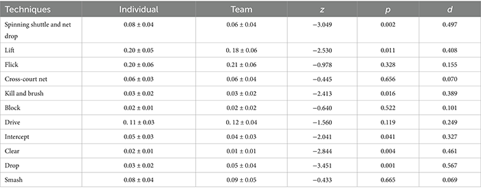 本研究系统探讨了不同赛制(21分制个人赛与11分制团体接力赛)对羽毛球男子单打比赛在时间结构、技战术运用及得分模式的影响。研究选取2024年世界青年羽毛球锦标赛男子单打项目中的40场比赛作为样本。结果显示,个人赛中运动员更多使用搓球、挑球等网前技术,团体赛则更倾向于采用吊球与拦截等技术。在得分模式方面,个人赛以非受迫性失误为主,团体赛中受迫性失误占比更高。研究结果表明,不同赛制对技战术应用具有显著影响;相较于21分制,11分制在维持较高比赛强度的同时有效缩短了比赛时间,降低体能消耗,并对运动员的心理稳定性与技术适应能力提出更高要求。本研究为赛制调整背景下青少年运动员技战术训练体系的优化提供了实证依据与理论支持。