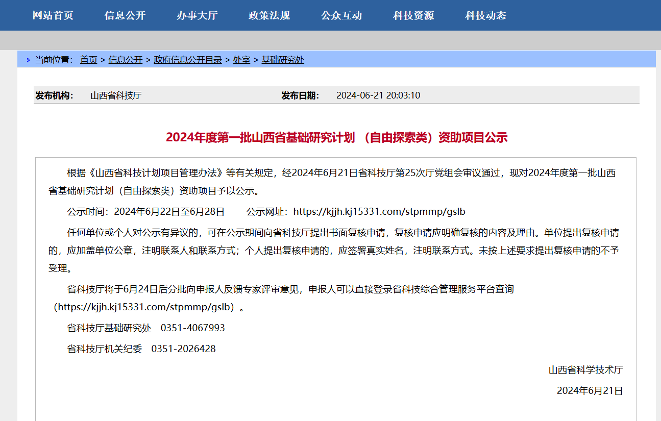 喜报:徐祖杰副教授获批2024年度第一批山西省基础研究计划 (自由探索类)资助项目