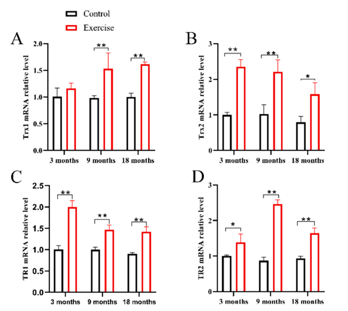 该论文通过分析有氧运动、硫氧还蛋白(Trx)和骨骼肌衰老之间的关系,以Trx系统为切入点,探讨有氧运动对大鼠骨骼肌衰老的改善作用及其可能的机制进行实验,最终得出结论,即10 周的有氧运动可能通过上调 Trx 和 Trx 还原酶 (TR) 蛋白表达来增强 Trx 的抗凋亡作用,同时增加了大鼠骨骼肌中的 Trx 活性,并最终减轻衰老骨骼肌细胞的凋亡。